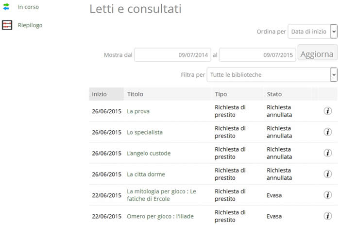 - Non sono disponibili documenti per il prestito: il documento (o i documenti, nel caso in cui la biblioteca ne possegga più copie) non può in quel momento essere dato in prestito.