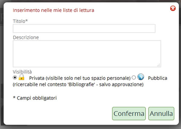 Per modificare lo stato di una bibliografia (da pubblica a privata e viceversa) cliccare sull'immaginetta che si trova a sinistra, a fianco di ogni bibliografia dell'elenco.