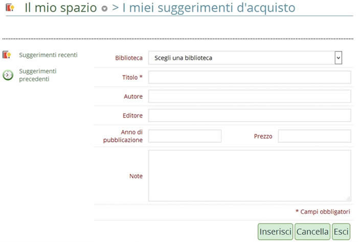E' possibile suggerire un acquisto sia dal box SUGGERISCI UN ACQUISTO, che si apre dopo aver effettuato una ricerca,