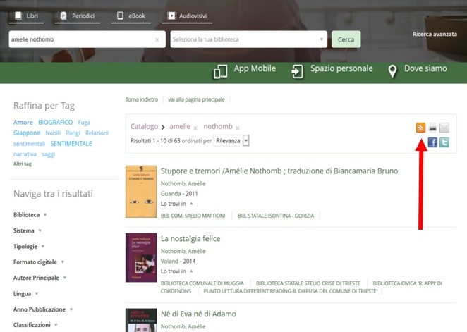 Ogni ricerca dà luogo alla creazione di un RSS Feed, che l'utente potrà liberamente importare sul suo browser o sul suo blog. Ciò permetterà l'aggiornamento quotidiano dell'utente sui documenti che possedessero i parametri da lui impostati nella ricerca.