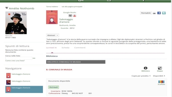 - Nella seconda parte della videata, è possibile visualizzare le biblioteche che possiedono il documento (scheda LO TROVI IN).