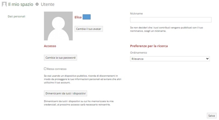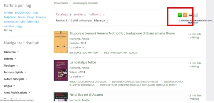 La ricerca verrà salvata automaticamente e la si troverà nel MIO SPAZIO – RICERCHE SALVATE