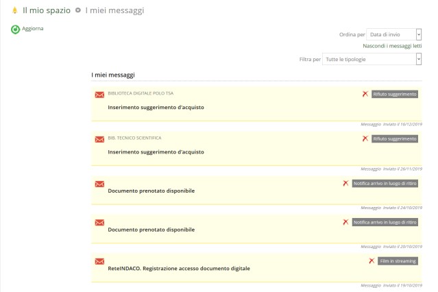 Il sistema invierà anche un messaggio all'utente sullo spazio personale, dove sarà riportato il link della risorsa