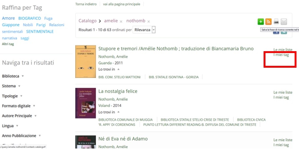 Cliccando su I MIEI TAG sarà possibile inserire una o più parole libere che saranno poi ricercabili in catalogo qualche giorno dopo l'inserimento.